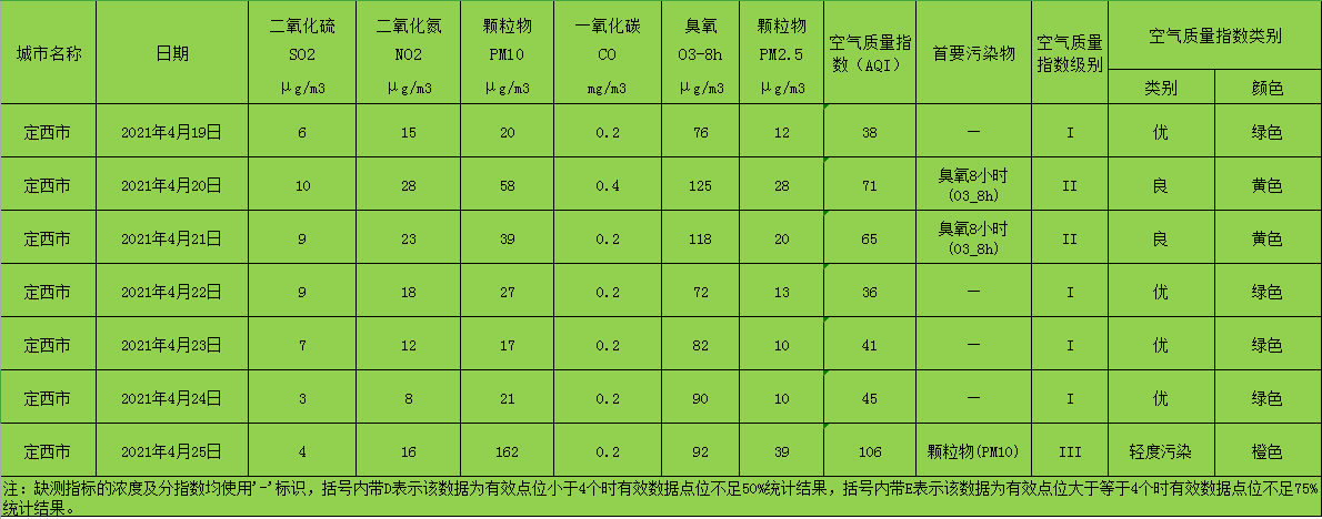 定西市区环境空气质量周报(2021年4月19日 - 2021年4月25日)