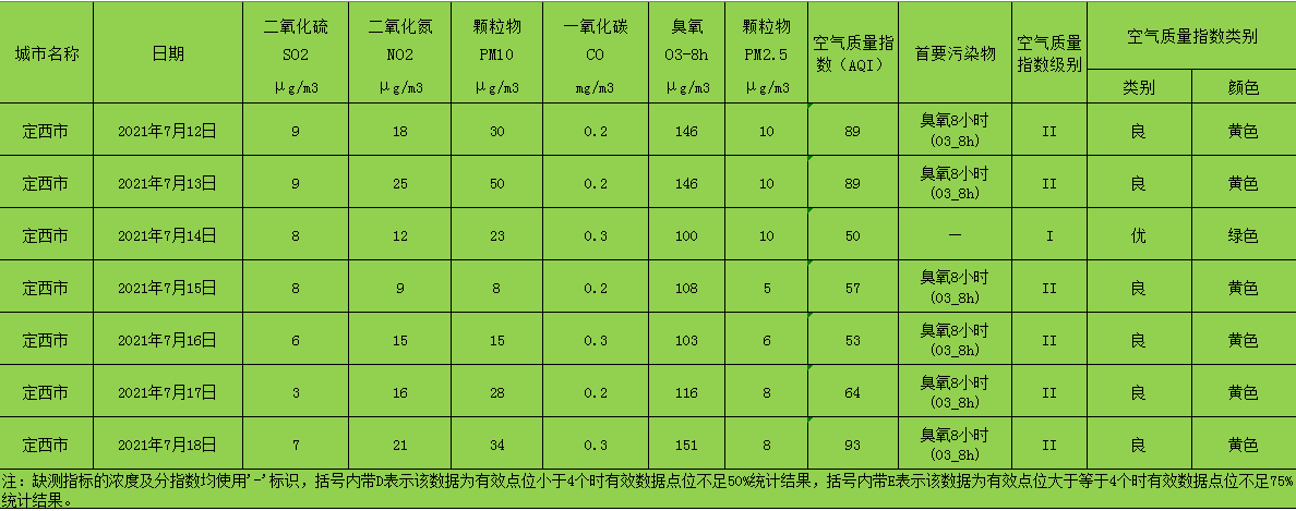 定西市区环境空气质量周报(2021年7月12日 - 2021年7月18日)