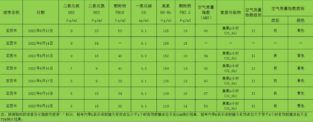 定西市区环境空气质量周报(2022年6月13日 - 2022年6月19日)