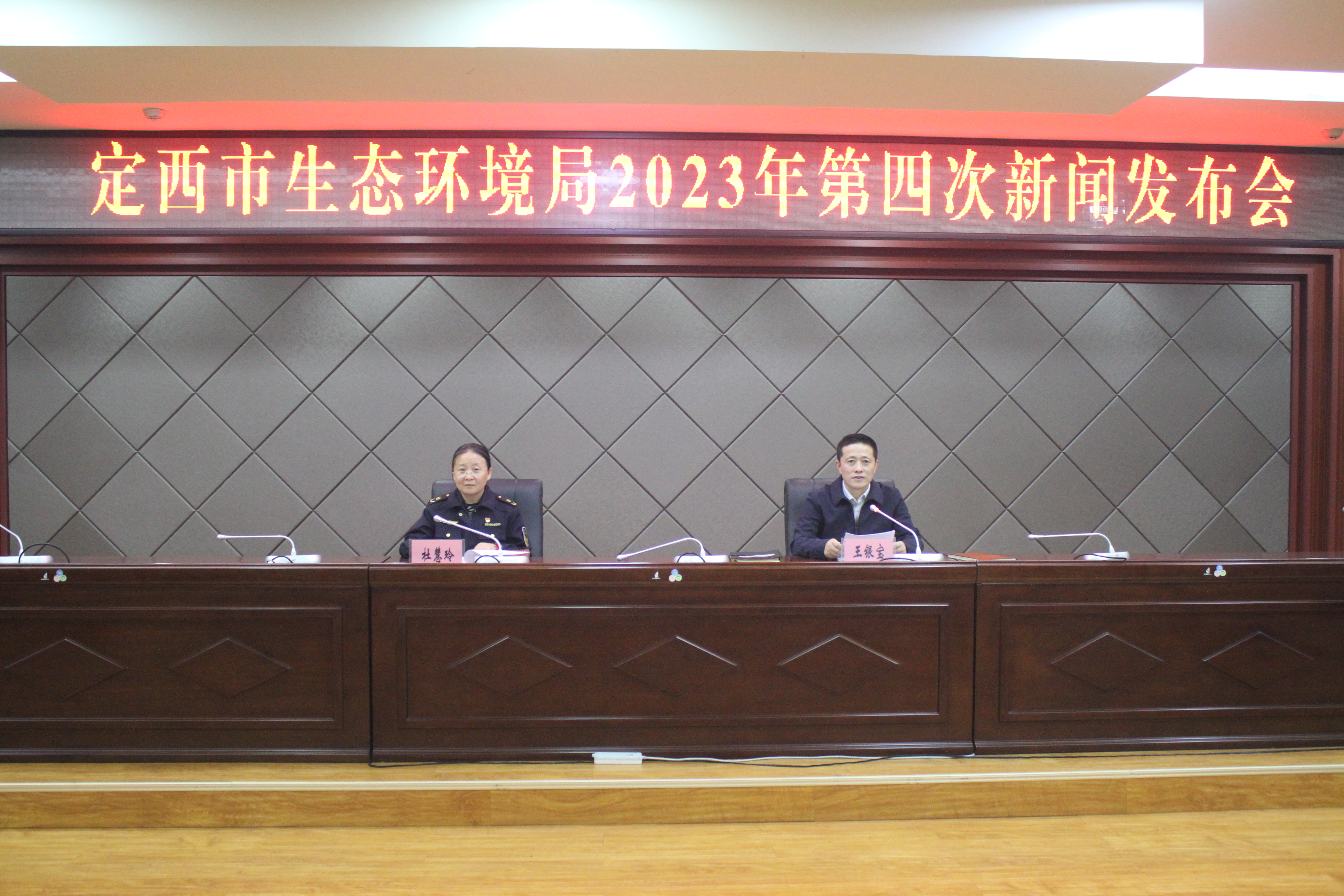 12月29日下午,定西市生态环境局举行2023年第四新闻发布会。市生态环境局党组成员、副局长杜慧玲介绍2023年全市生态环境执法监管工作开展情况。发布会由市生态环境局党组成员、副局长王银宝主持。
