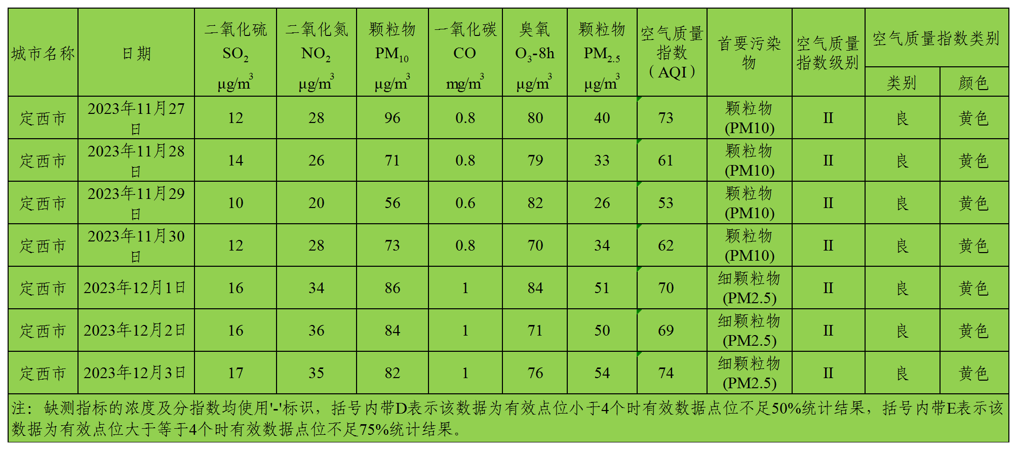 定西市区环境空气质量周报(2023年11月27日 - 2023年12月3日)