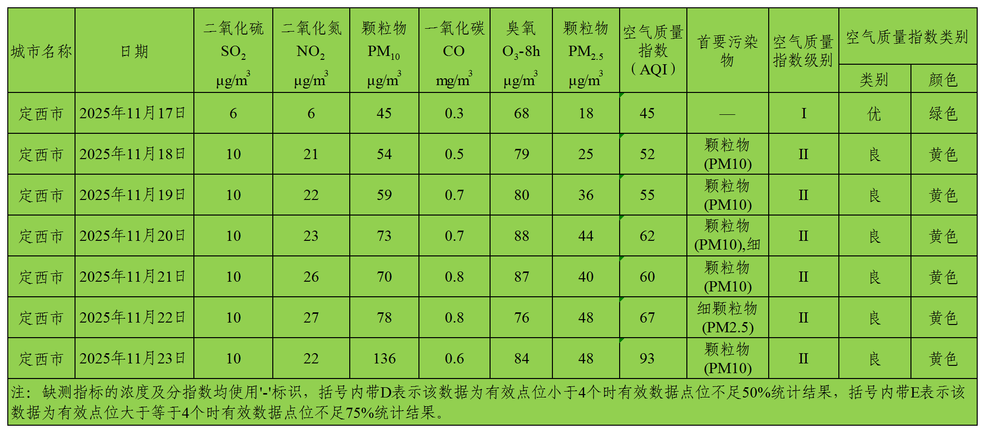 定西市区环境空气质量周报(2025年11月17日 - 2025年11月23日)