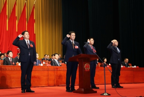 第二阶段大会首先举行宪法宣誓,在热烈的掌声中,新当选的市五届人大常委会副主任杨海文、市人民政府副市长贾文举,市五届人大常委会委员黎辉、魏长缨来到主席台前进行宪法宣誓并向全体代表致敬。 随后,表决通过了定西市人民政府工作报告的决议、定西市国民经济和社会发展第十五个五年规划纲要的决议、定西市2025年国民经济和社会发展计划执行情况及2026年国民经济和社会发展计划的决议、定西市2025年财政预算执行情况和2026年市级财政预算的决议、定西市人大常委会工作报告的决议、定西市中级人民法院工作报告的决议、定西市人民检察院工作报告的决议,表决通过了定西市2026年民生实事项目。