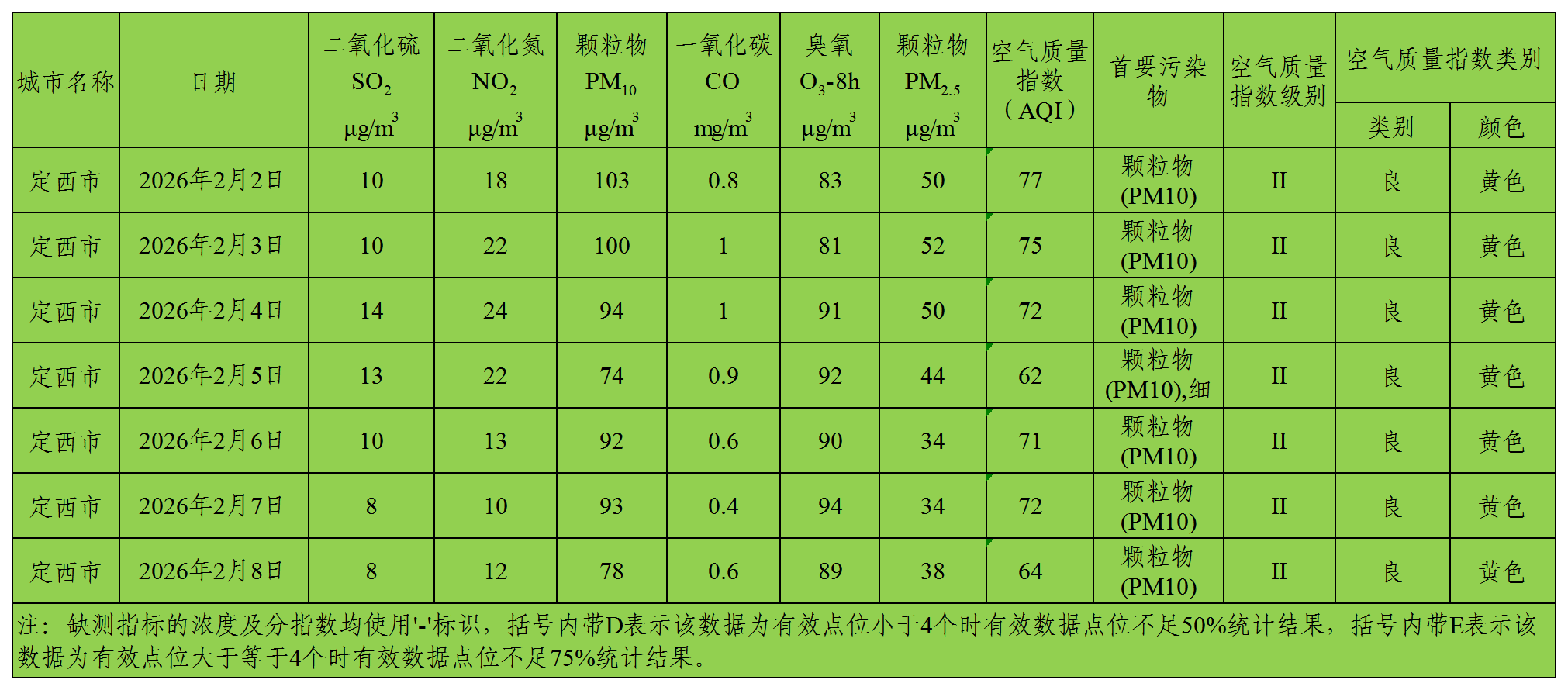 定西市区环境空气质量周报(2026年2月2日 - 2026年2月8日)